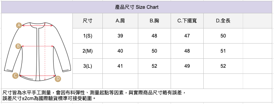 🔺尺寸皆為水平手工測量,會因布料彈性、測量起點等因素,與實際商品尺寸略有誤差,誤差尺寸±2cm為國際驗貨標準可接受範圍。