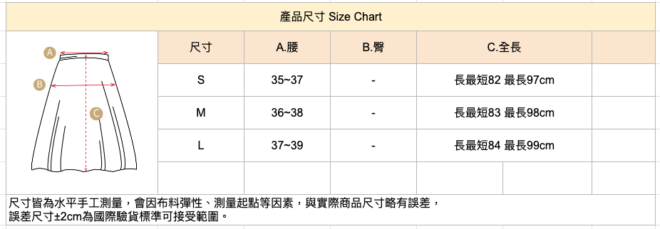 裙子版型為偏低腰的設計,所以腰圍略偏大,