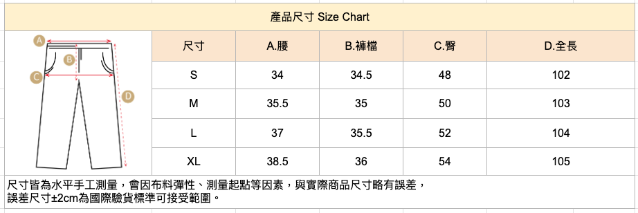 🔺尺寸皆為水平手工測量,會因布料彈性、測量起點等因素,與實際商品尺寸略有誤差,誤差尺寸±2cm為國際驗貨標準可接受範圍。