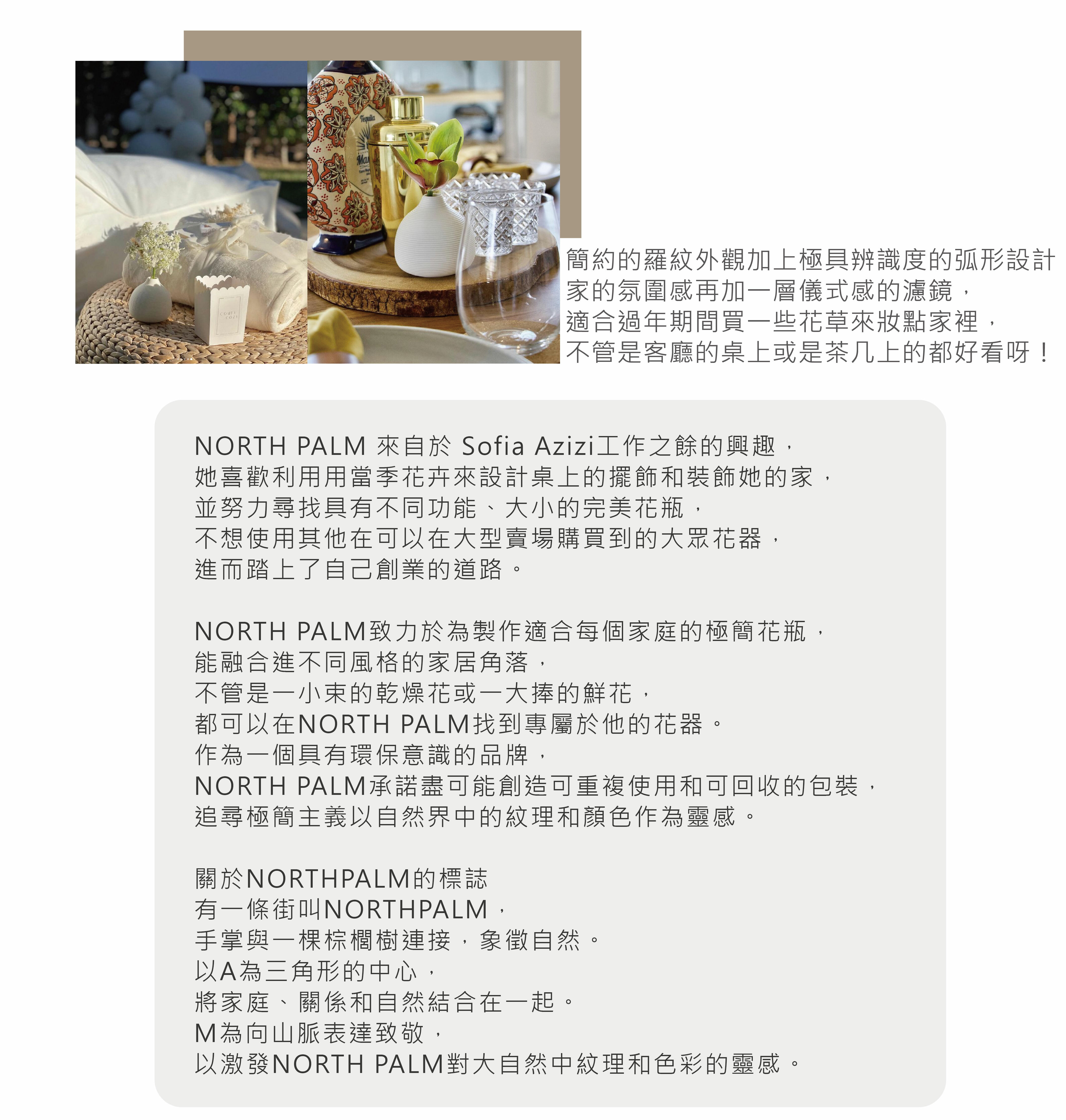 ・ 柱形的瓶身可以擺放比較大型的花草,溫潤的弧形角度不挑地方放,可以用來裝飾較狹小空間也不顯擁擠,適合床邊桌的放鬆角落或是擺放在層架賞展示也好看。